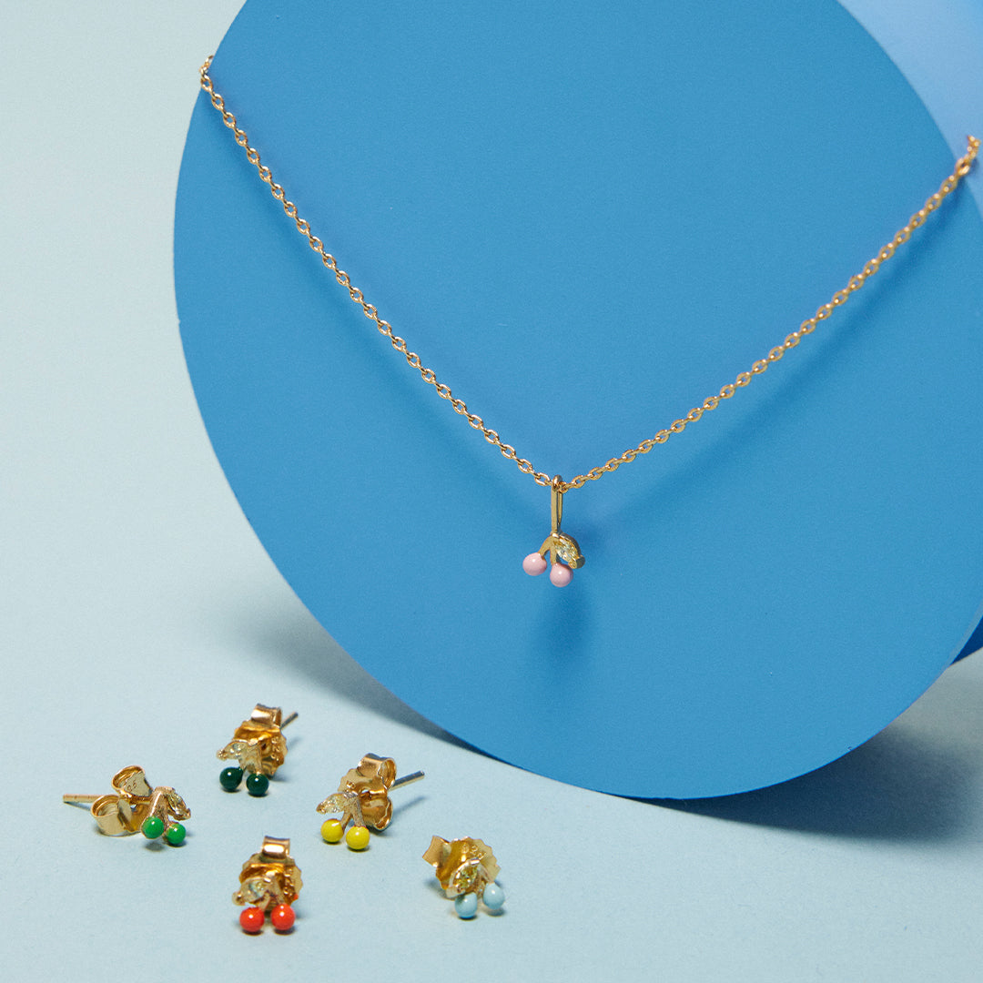 Emaillierte Kirschohrringe, Halsketten und wunderschöne Armbänder.