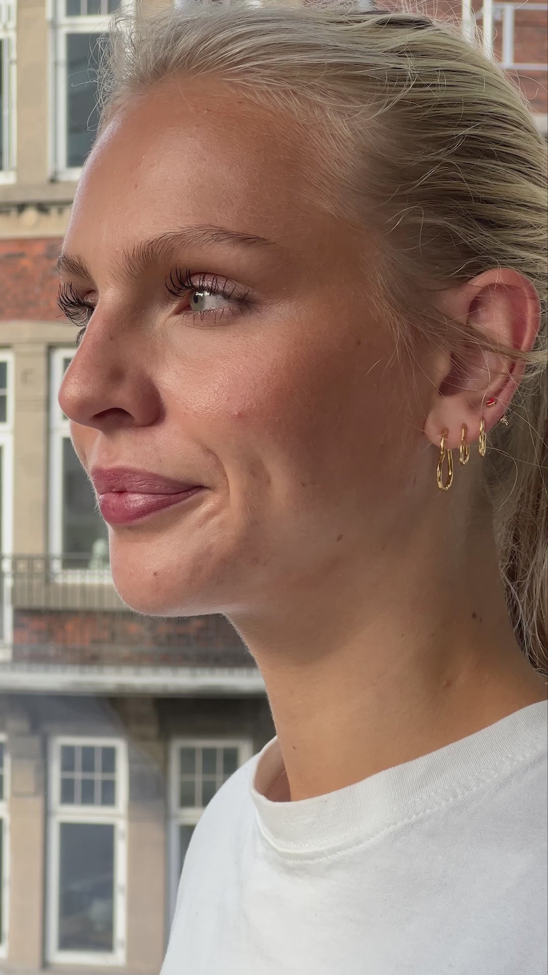 The jewelry is made of certified recycled sterling silver. This means that the material has been reused from old jewelry or other silver products, contributing to a more sustainable production.