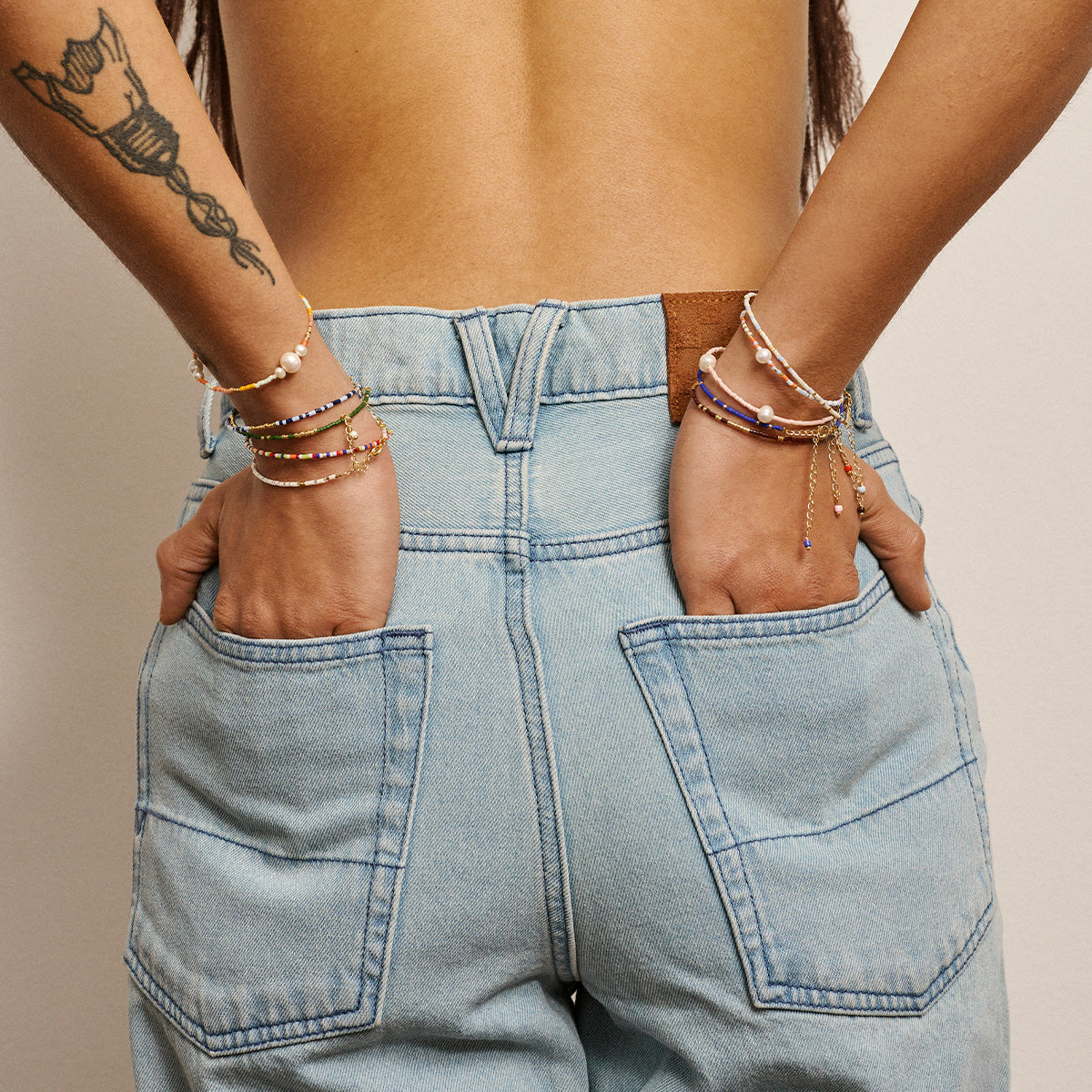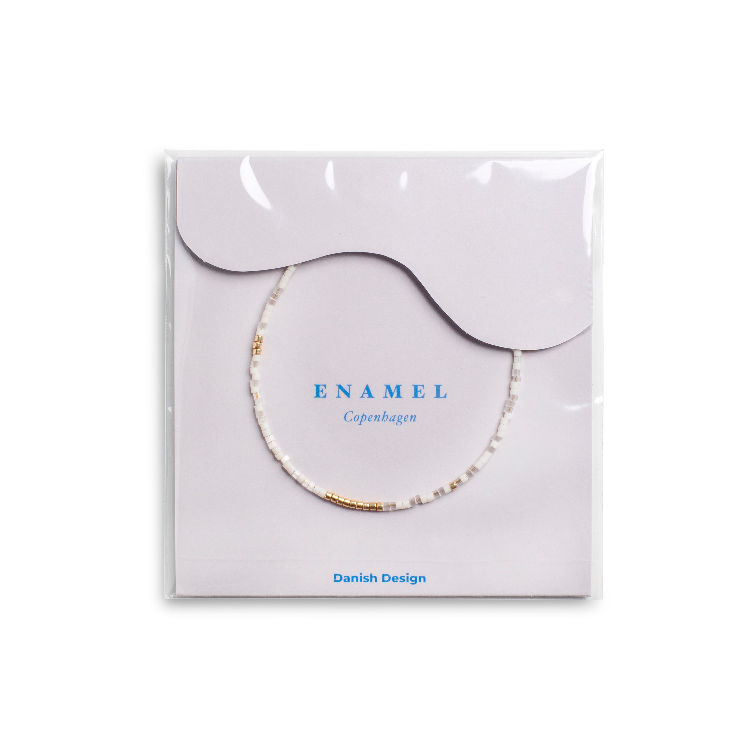 About the jewelry: The pure miyuki beads in white shades give a classic, almost minimalist expression, which the gold enhances with its warmth. A timeless combination that suits everything.