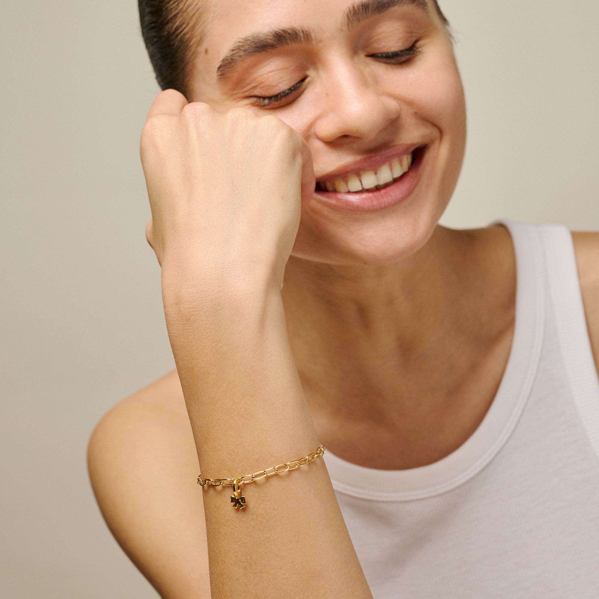 About the jewelry: Baby Bow is a sweet and feminine charm that adds a playful elegance to your look. The classic bow shape is a symbol of grace, lightness, and a touch of nostalgia – like a little gift you carry with you every day. The clasp mechanism on the Darling Bow charm can be removed, and with the remaining loop, you can attach the bow to a large portion of our hoops. The pendant is especially designed for our bracelet and necklace series called Charm, as well as our simple necklaces and bracelets.