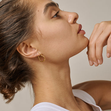 About the jewelry:Organic Heart hoops medium, are a pair of cool hoops shaped like a heart. The heart is large without being chunky, and the expression is simple without being boring. Pay particular attention to the beautiful, handmade surface of the heart. The earrings are discreet and understated from the front, but if you see them from the side, you'll notice that they are shaped like a heart. Organic heart hoops medium are designed to show love to yourself, a partner, a family member, or a good friend.