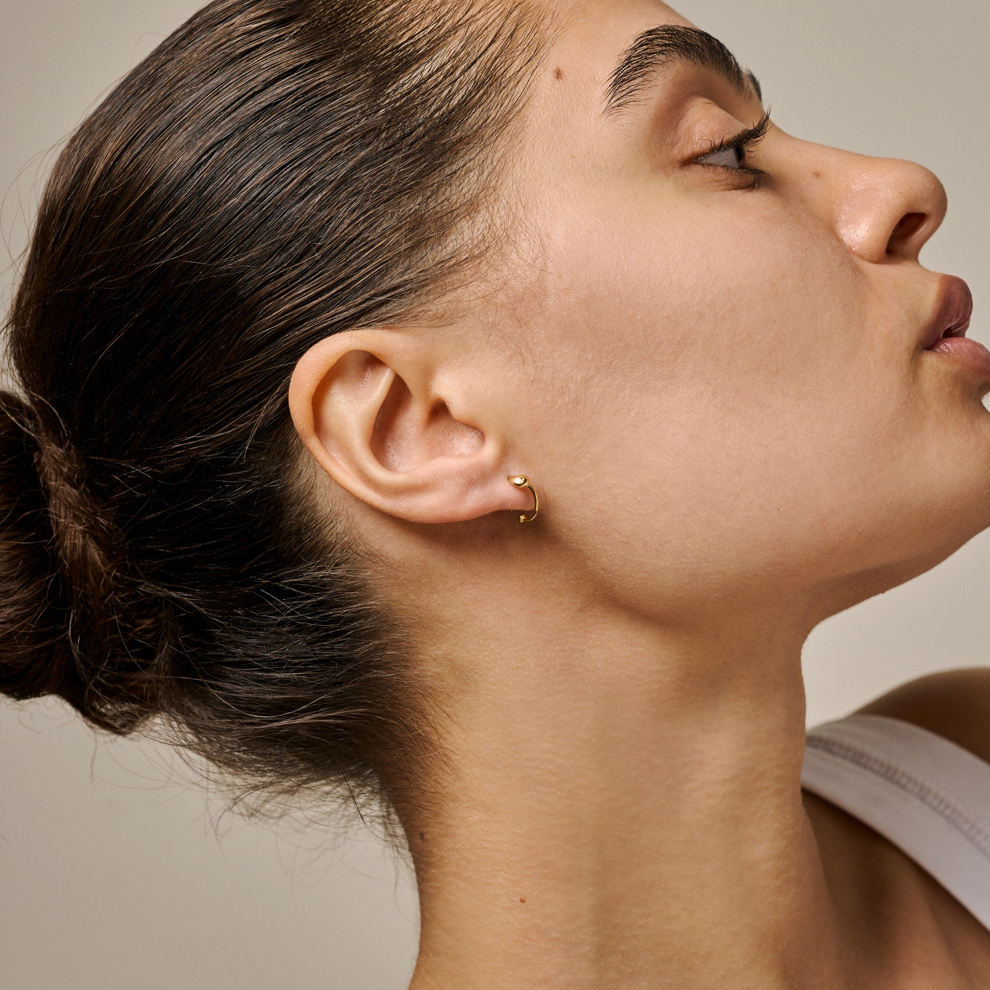 About the jewelry:Twistie drop is an ultra-thin and minimalist earring that twists easily without mechanisms. You open it by twisting the earring to each side, put it on, and twist back. Gently squeeze it together, and it sits beautifully and securely. The simple design offers a clean and modern expression, and the shiny, organic detail in front, resembling a drop, adds just the right amount of character to make it stand out. A discreet hoop that you can wear alone or combine with others – perfect for everyday use and perfect for that extra hole. Twistie is one of our most cost-effective earrings, but still feels like a small design object in itself.