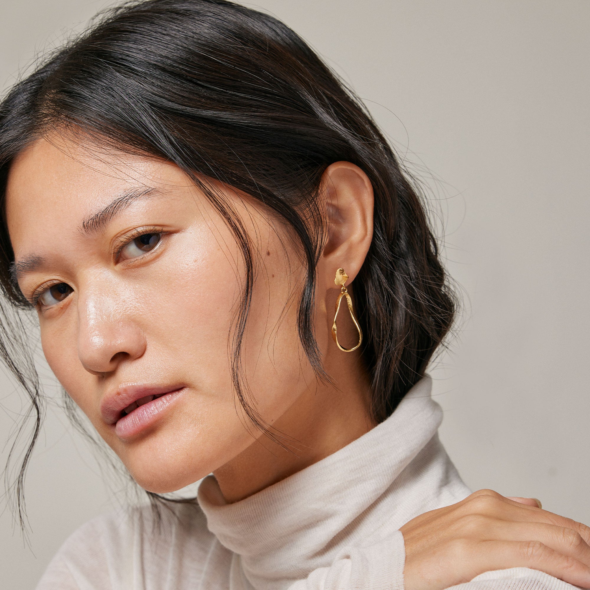 Our 18-karat gold plated Aloma earrings have a sleek, voluminous expression with a lightness that makes these earrings truly unique. The artistic and exclusive design of the Aloma earring provides you with a versatile pair which is suitable for any occasion. Aloma small are a pair of sweet earrings that can be styled in a variety of ways. Wear them alone for a subtle look or combine with colorful jewelry for a playful expression.