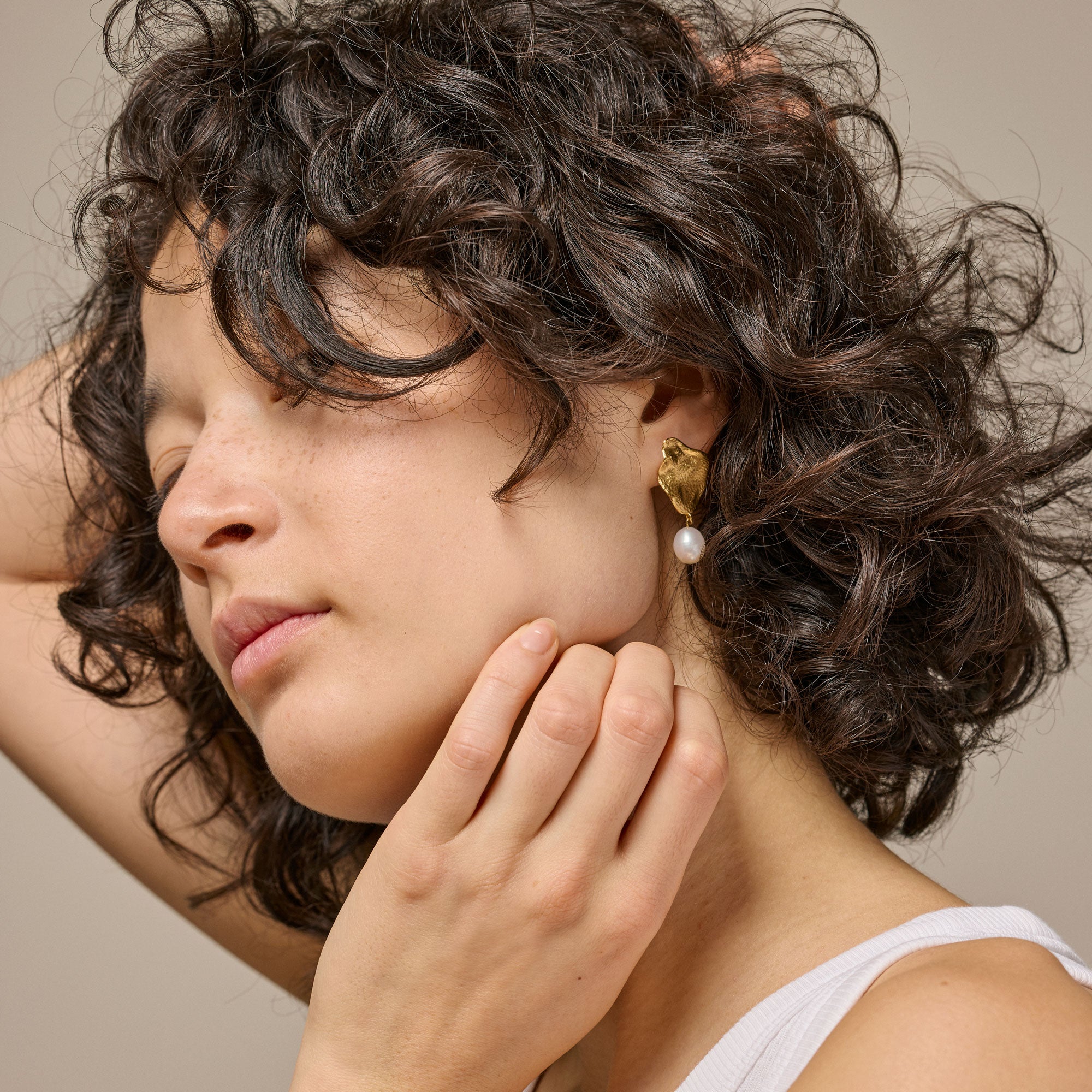Qualität: 18 Karat vergoldetes 925 Sterling Silber/matt (99% recyceltes Sterling Silber) und Süßwasserperlen Abmessungen: 34 x 15 mm