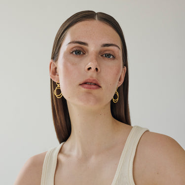 About the jewelry:The Carina Earring is an elegant and characterful earring that balances the soft with the striking. The organic rings hang loosely together, creating a beautiful, movable expression, while the hammered detail adds a touch of raw elegance. Bellu has a striking volume but is also easy to wear.