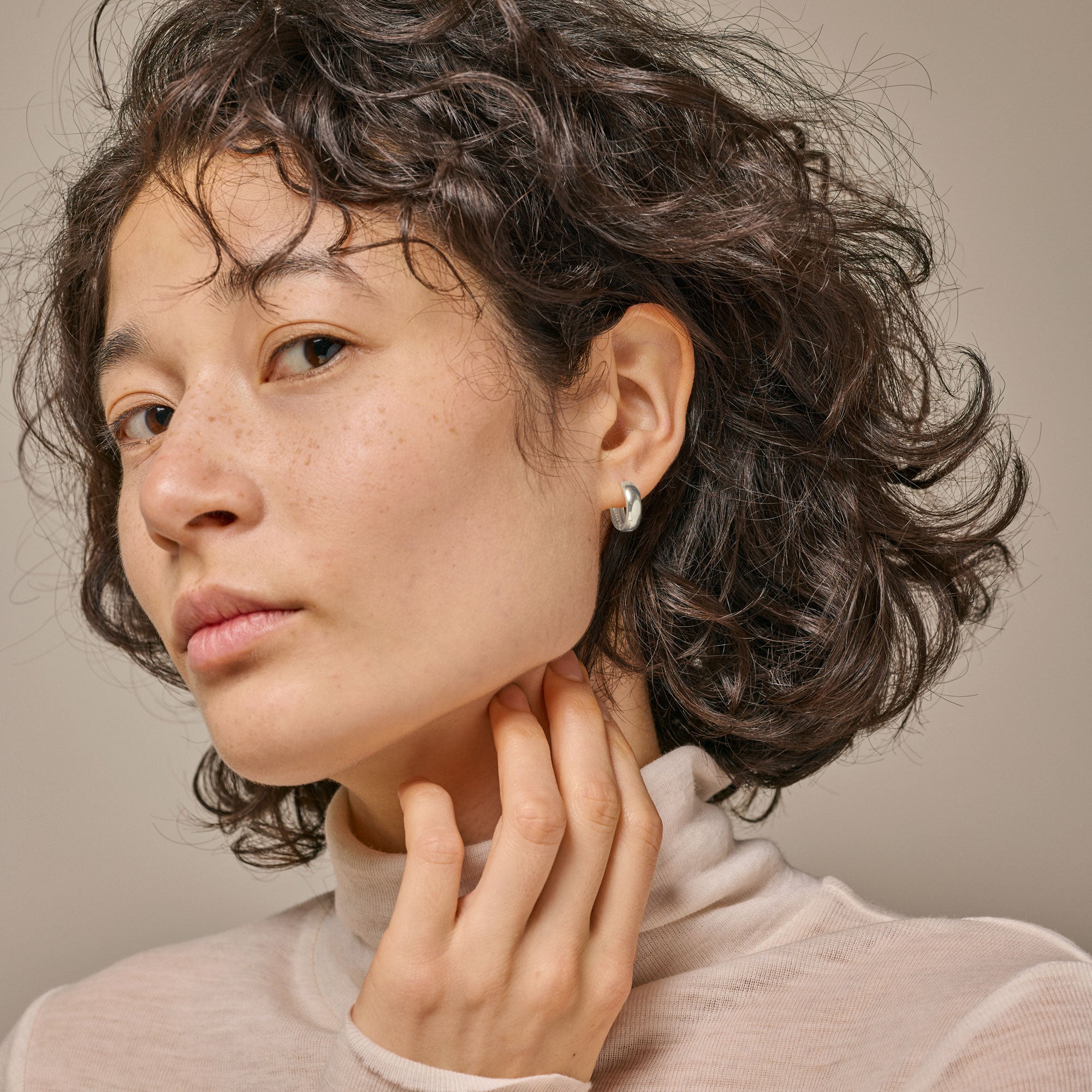 The jewelry is made of certified recycled sterling silver. This means that the material has been reused from old jewelry or other silver products, contributing to a more sustainable production.