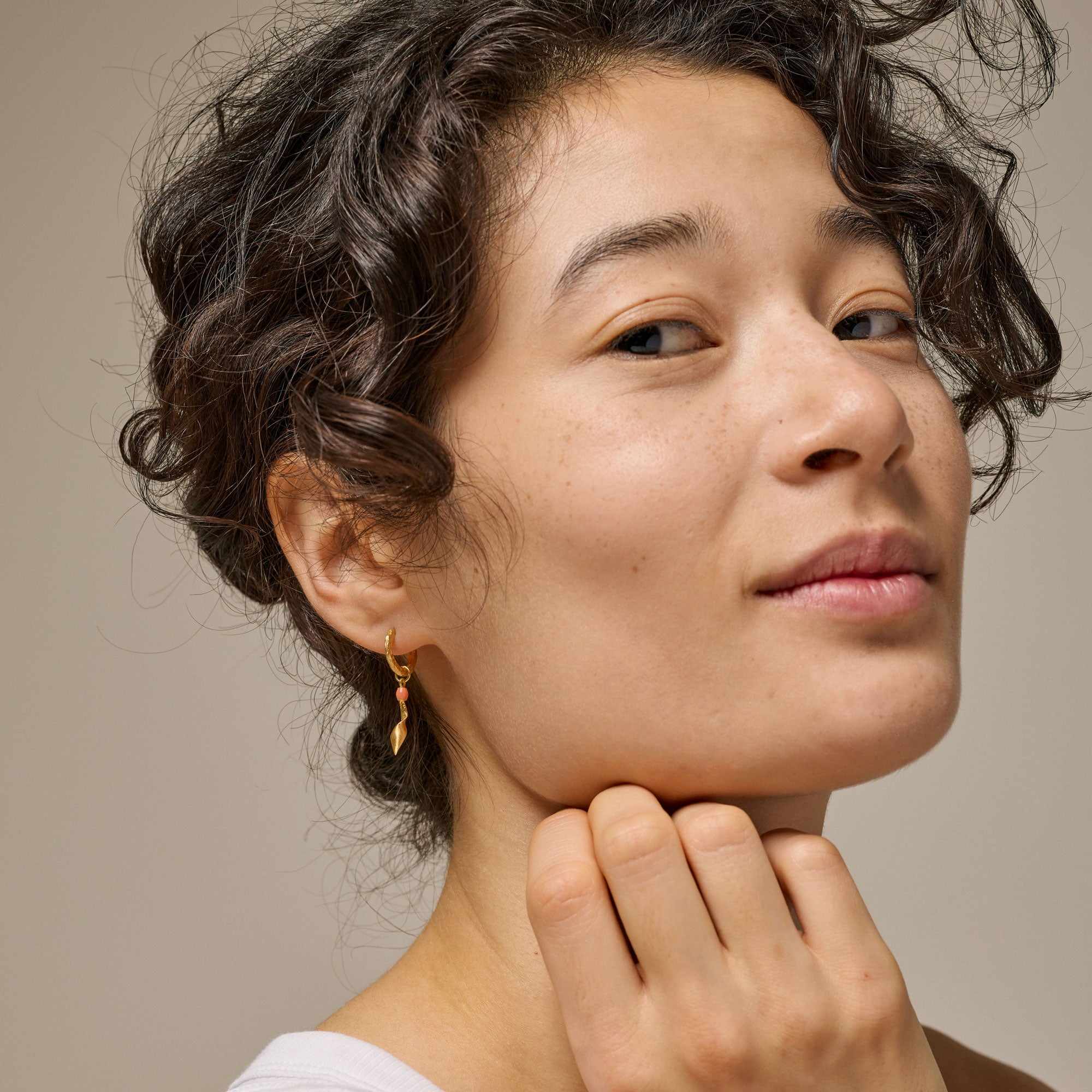 About the jewelry:The Moa hoops in the light coral color are made of 925 sterling silver, and plated with 18 carat gold. The coral color has a lovely sweetness and a light summery feel to it.