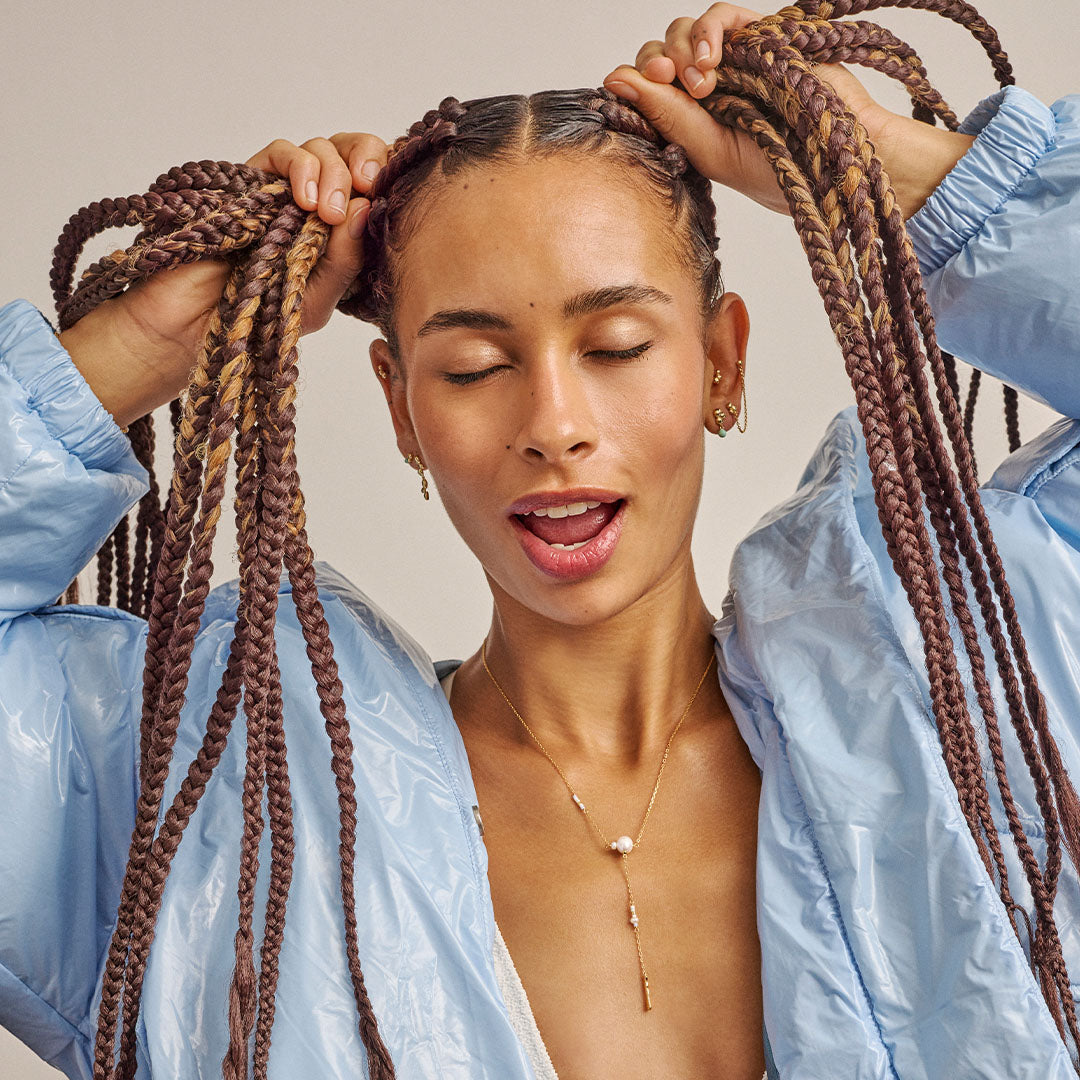 About the jewelry: The color combination Skyline consists of delicate green and blue shades, giving a calm expression to our Benedicte necklace. The colors suit all skin tones and evoke various shades of the sky.