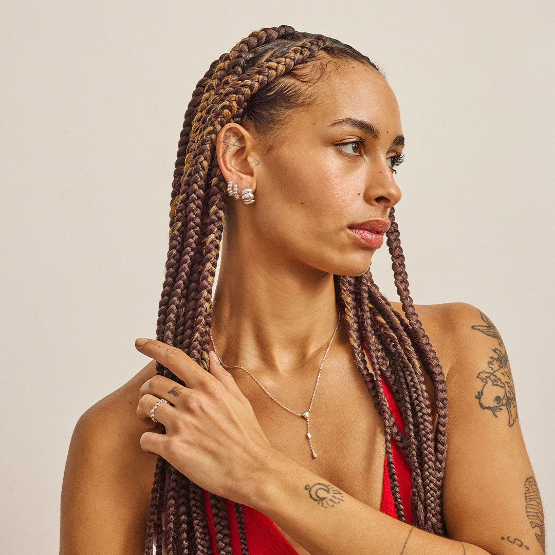 About the jewelry: The Talia necklace in silver has an organic and elegant expression as the soft silver elements play beautifully with the fine chain. The design is a classic Y-necklace, which falls lightly and flatteringly on the neck. The polished shapes create a luxurious and timeless look. Talia is also available in gold.