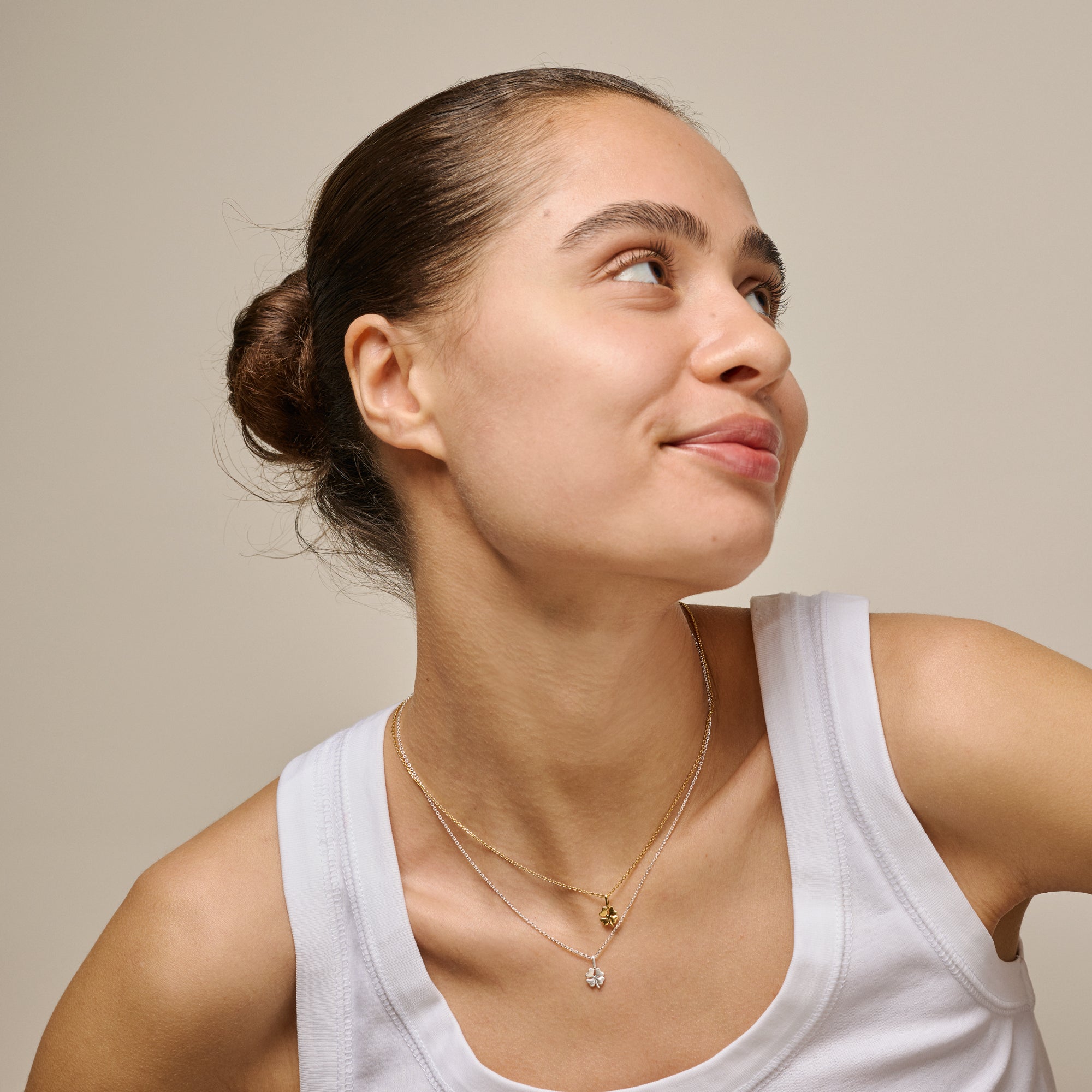 About the jewelry: Beautiful, handmade clover necklace with tasteful details. The four-leaf clover is an ancient symbol of luck, bringing good fortune to the wearer. Our clover necklace is for those with an eye for detail, appreciating unique craftsmanship, and meaningful jewelry. The clover series is also available as earrings and bracelets.