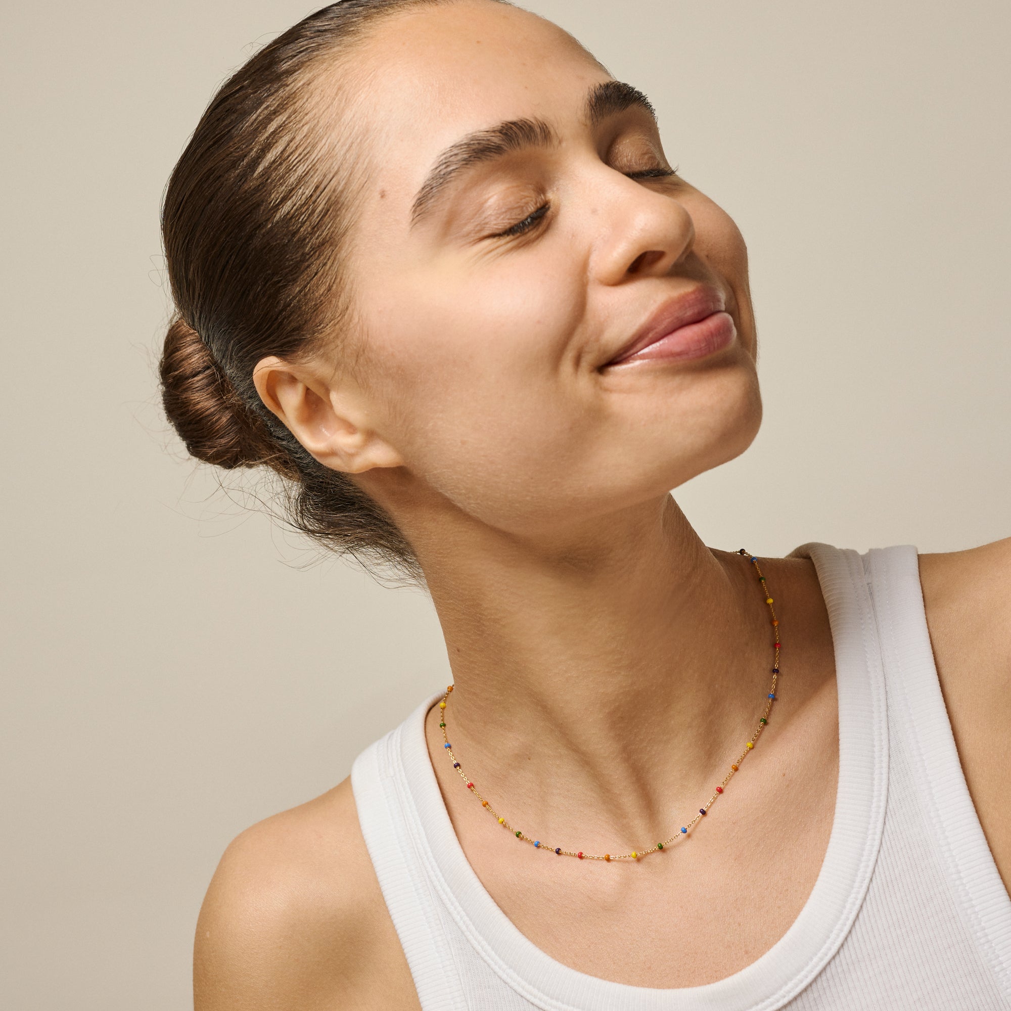 As part of this collaboration, we have designed a special Lola Diversity necklace in rainbow colors. Note that the necklace is longer than our regular Lola necklaces.