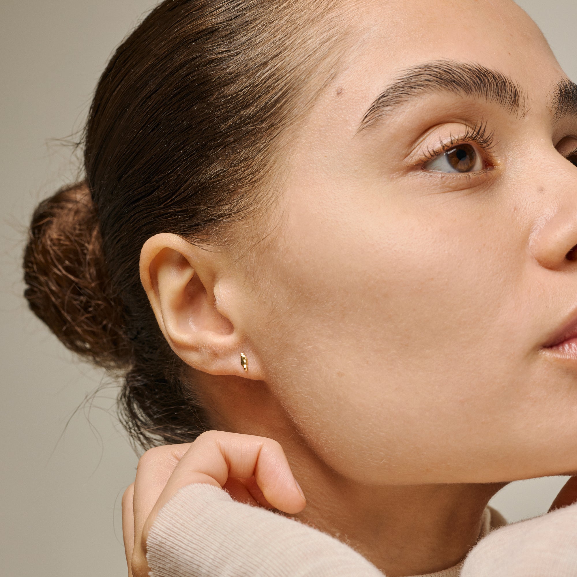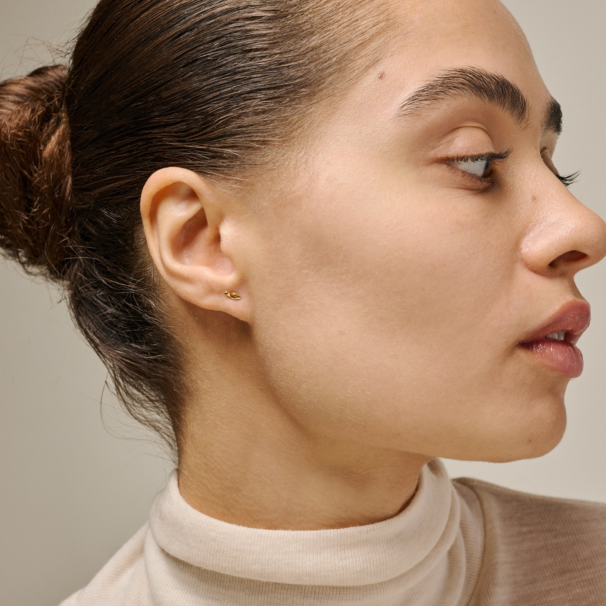 About the jewelry:India Petite Stud is a delicate and organic ear stud with a handmade shape that feels both modern and timeless. The small stud follows the same design language as our India series but in a completely understated and minimalist version. Perfect for those who want a discreet piece of jewelry with an edge - and ideal as an extra ear stud in a mix. Also available in silver.