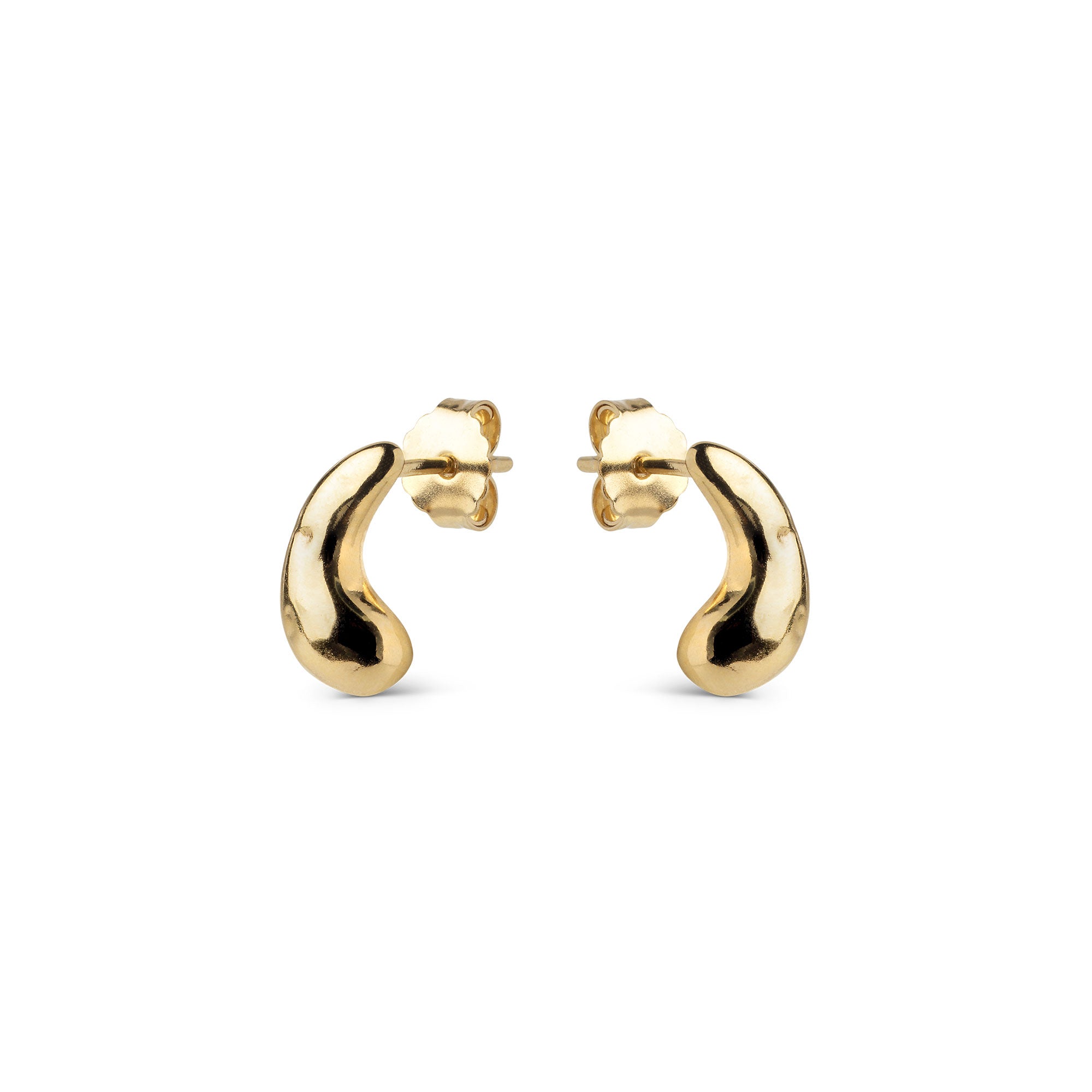 About the jewelry:Nima Stud is a small, elegant earring with a soft, organic shape and a gently rippled surface. The shiny finish gives it an exclusive touch, and the compact design makes it ideal for both everyday and more refined looks. Wear it alone for a minimalist expression – or combine with several styles for a personal styling. Nima stud is coated with 18 karat gold, but is also available in a silver version.