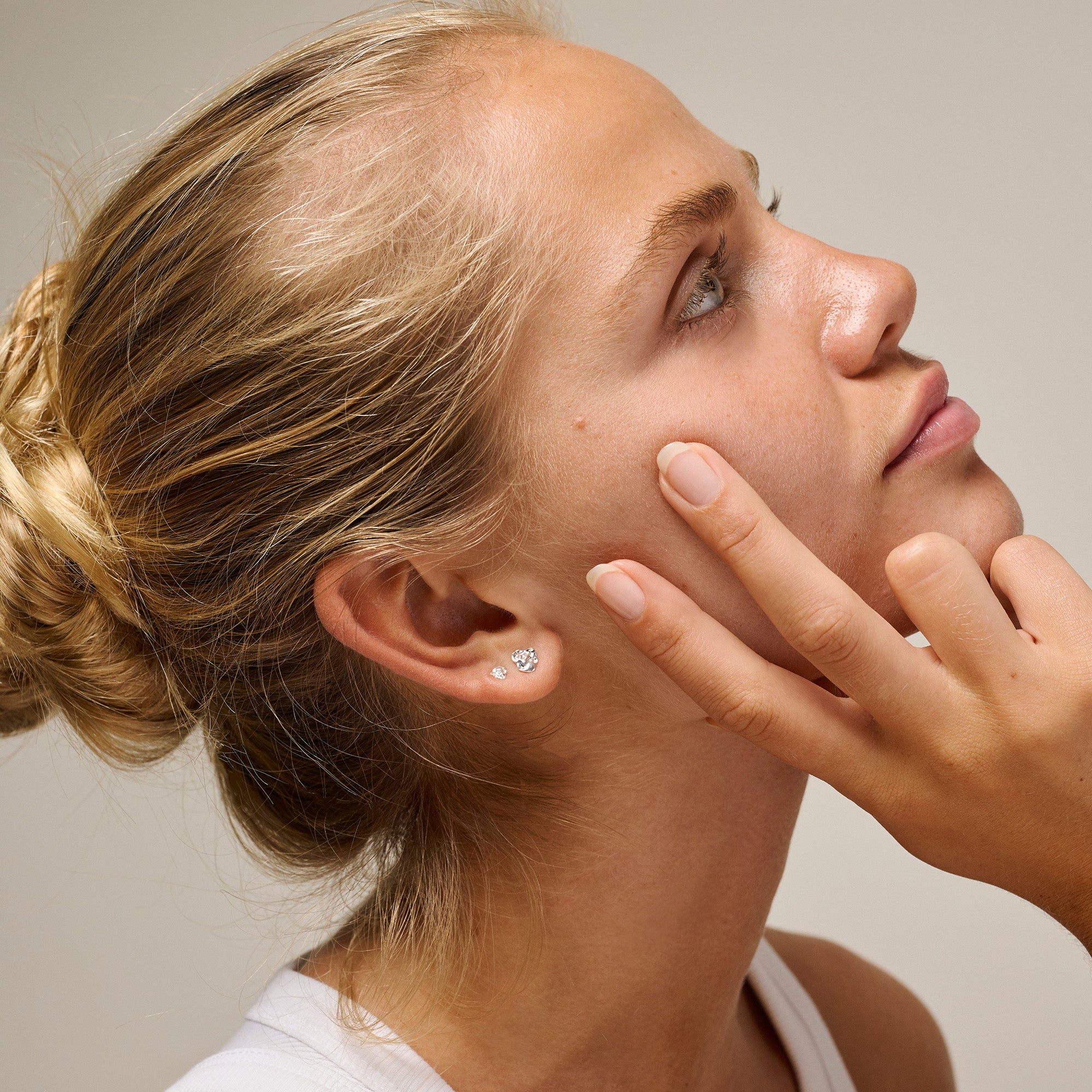 The jewelry is made of certified recycled sterling silver. This means that the material has been reused from old jewelry or other silver products, contributing to a more sustainable production.