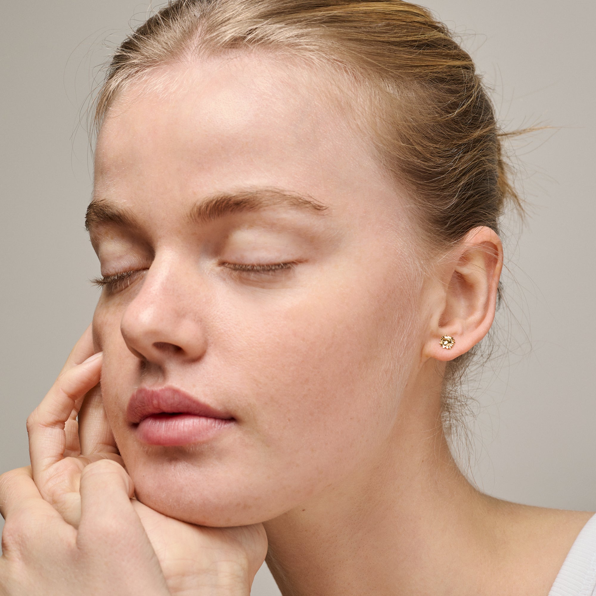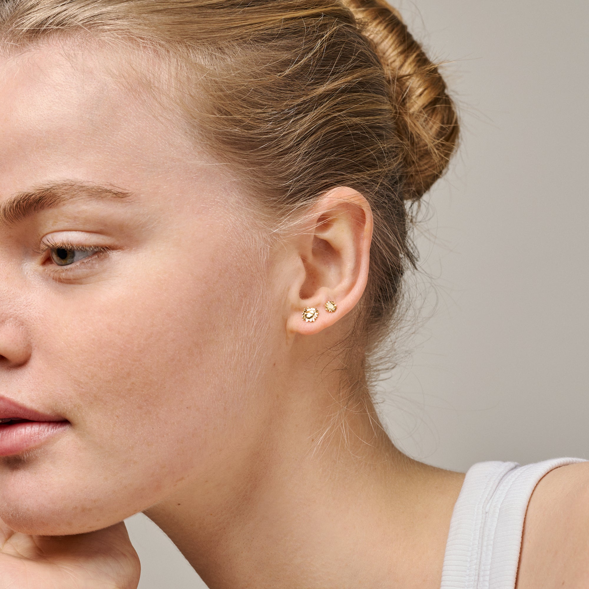 About the jewelry:The gold-colored Sunshine studs in small are the perfect gift for the person who is the finishing touch in your everyday life. The person who makes everything smell and look better, just like a beautiful, sunny summer day. The gold earrings depict a sun or a sunflower, depending on the eyes looking at it, and have a classic, yet different expression. Small Sunshine studs are also available with enamel in the middle of the sun and in two other sizes.